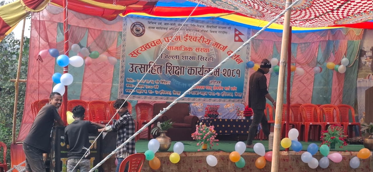 सिरहा, लहान २० हरिनगरा प्राथमिक(कक्षा ५ सम्म) बिधालय मा पितापर्मेस्वर (क्रीस्चियन को भजन मन्डली) बिधालयकै प्राङ्गणमै गराउन अनुमती वडा अध्यक्ष श्री गणेश चौधरी ले दिएको स्थानिय राम रिझन यादब जि ले बताउनु भयो।
